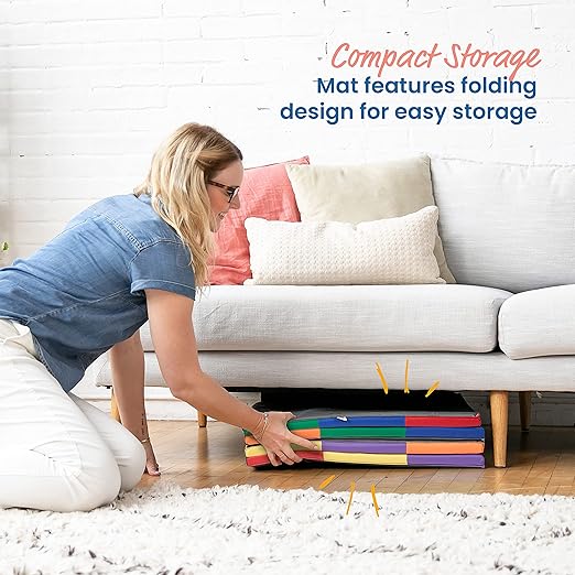 - Folding Design: Quickly assemble with sewn-in stay-put fasters; baby play mat folds into a compact square for space-saving storage in closets, large bins, or under the bed when not in use