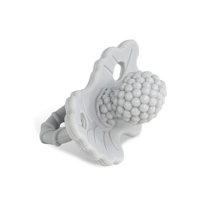- BerryBumps Design: The RaZberry teething pacifier is made with 100% soft silicone and textured with patented BerryBumps to soothe sore, swollen gums. It’s great for chewing and can also be frozen for added soothing support!