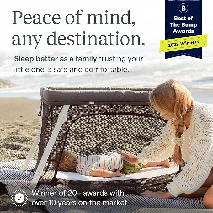 - 【BUILD A BETTER BOND】Quietly and easily unzip the lockable side door to help your baby fall asleep or turn the portable crib into a play yard. With the door open, you can nurse or cuddle your little one to help them feel safe and secure in a new place and foster an even stronger connection. The updated insulated mattress has a thick, soft foam approved for overnight sleep (ages 0-3) making it a safe and comfortable environment for both resting and playing.