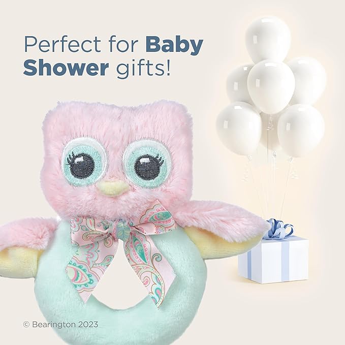 Charming Rattle Fun: Meet the Bearington Baby Lil' Hoots plush owl, a delightful baby rattle toy. Tiny hands will love shaking this cute rattle with its gentle sound, perfect for keeping infants entertained and curious