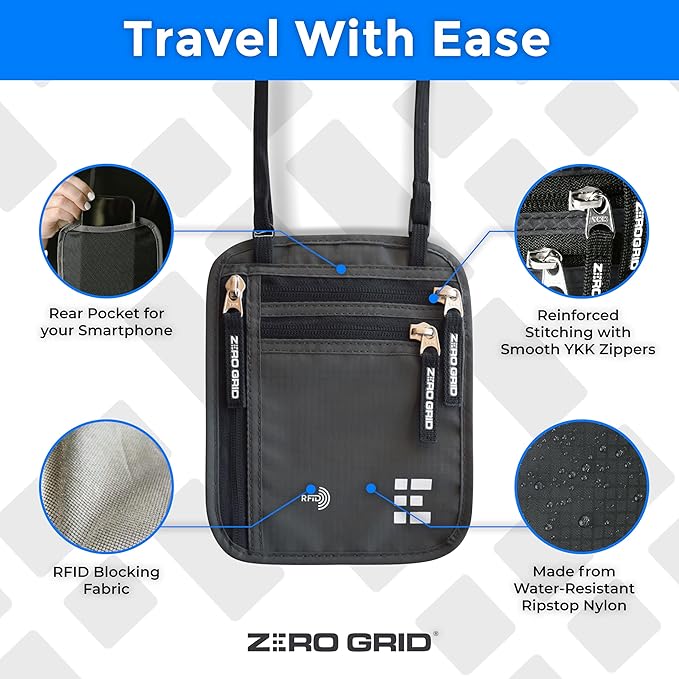 - Built to Last, Wherever You Roam: Crafted from water-resistant ripstop nylon, reinforced stitching, and high-quality YKK zippers, this neck wallet is tough enough for any adventure. The breathable mesh backing ensures comfort during long travels, making it ideal for exploring cities, hiking, or long flights.