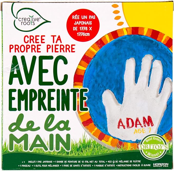 - MIX & MOLD A CUSTOM HANDPRINT STONE: Plaster mix, a keepsake stone mold, protective gloves, a mask, paints & a brush — this kit includes the arts & crafts supplies you need to create a special décor piece you’ll cherish forever. Have a new baby brother or sister? This also works as a baby handprint footprint keepsake kit!