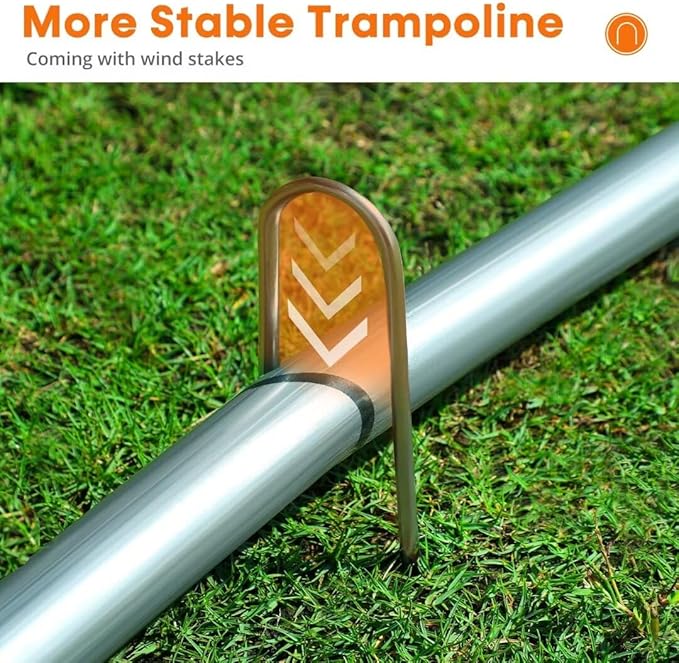 - 【Risk Free Purchase】Our package includes everything you need for a hassle-free setup: 2 springs loading hooks, 2 gloves, and a comprehensive assembly guide that makes assembly a breeze. Plus, we've included windproof ground stakes to ensure trampoline stays firmly in place. To your trampoline looking new, we've added a weather-resistant cover that shields against UV damage and inclement weather. And our dedicated after-sale team is on standby 24/7 to assist you whenever needed.