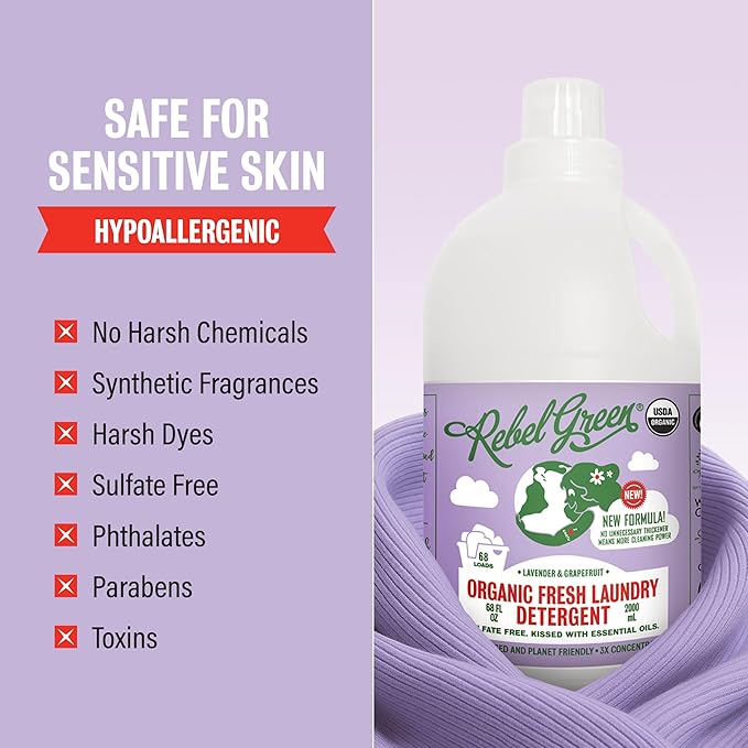 - Fresh & Clean: Rebel Green's USDA Certified Organic laundry soap is incredibly effective; this high-quality detergent is made with a 3x concentrated formula designed to deeply clean your clothes with gentle ingredients you can trust