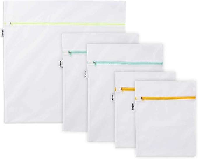 - DURABLE MESH LAUNDRY BAGS: These heavy-duty, washable laundry bags help extend the life of your intimates, preserving each garment longer. Try this wash bag to safely clean delicate pieces or to keep track of small items in large loads. The tucking feature allows you to easily secure the zipper tab.