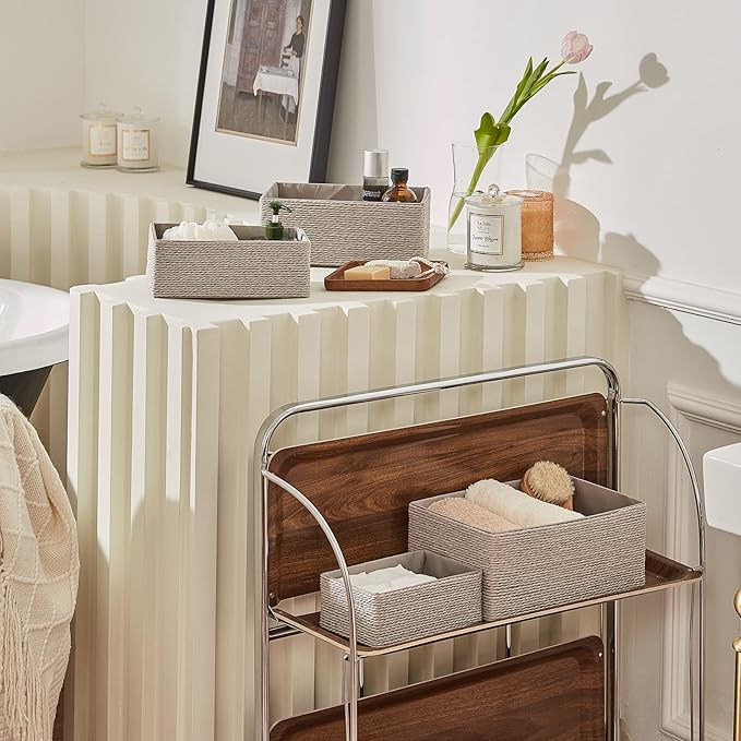 HANDCRAFTED & DURABLE: These trendy baskets are easy to clean and extremely durable for your shelves cupboards desk. Effortlessly double as decorative pieces and store your odds and ends.