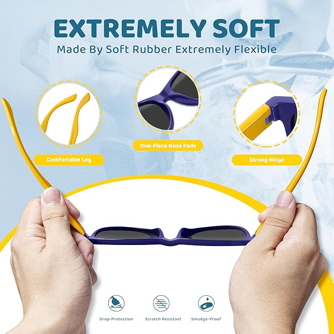 SAFE AND COMFORTABL - RIVBOS sunglasses frame is made of soft silicone and unbreakable material, which is not easy to break, very durable, and also provides a comfortable wearing experience.