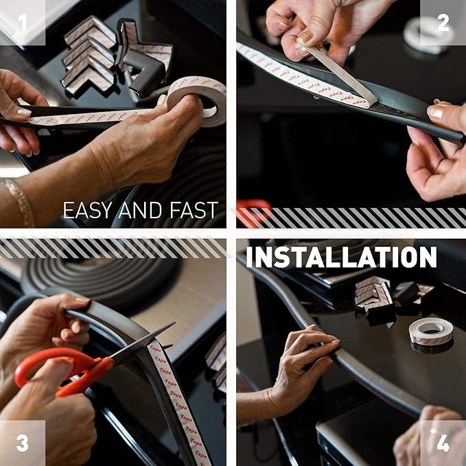 - ✔ INSTALL EASILY, FITS ANY FURNITURE: Turn your home into a safe playground in seconds with baby safety rubber corner guards and table edge protector. Simply cut edge protector for baby to fit your furniture. Suitable for use on kitchen countertops