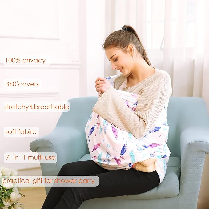 Made of super stretchy fabric, fit your body in just seconds (no need any zippers / snaps to clamp the carseat). Infinity tubular shape, stretchy & breathable fabric, provides full privacy coverage and enough space while nursing. Create a cooling, super soft and quite environment for your baby.