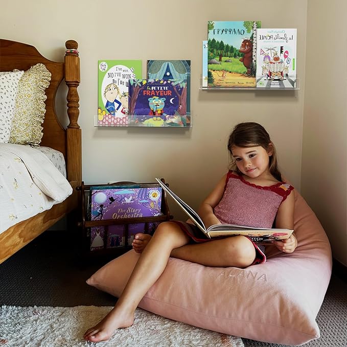 - [Premium Acrylic Material] Crafted from 50% thicker acrylic, this elegant bookshelf is built to withstand daily use without yellowing or cracking. Its crystal-clear design enhances visibility, making it easy to locate books, toys, or art supplies while blending effortlessly into any room.