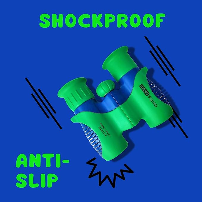 - Special Feature : Durability: Shock Resistant, Slip Resistant, Water Resistant, Ergonomic Colorful Kids Design, Portable, Hands-free case, Lightweight, High Magnification, BAK4 Prism, 8x21 Magnification, Carabiner, Compass, Manual Focus: Focus Knob, One Hand Focus, Safety Measures: Soft Rubber Eyecups, Break-away Strap, Large Eyecups, Food grade Rubber Durability: Shock Resistant, Slip Resistant, Water Resistant, Ergonomic Colorful Kids Design, Portable, Hands-free case, Lightweight, High Magnification, BAK4 Prism, 8x21 Magnification, Carabiner, Compass, Manu… See more