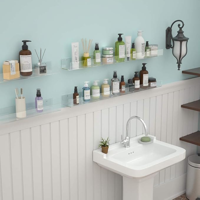 NIUBEE Kids Acrylic Floating Bookshelf 36 Inch,Clear Invisible Wall Bookshelves Ledge Book Shelf,50% Thicker with Screwdriver