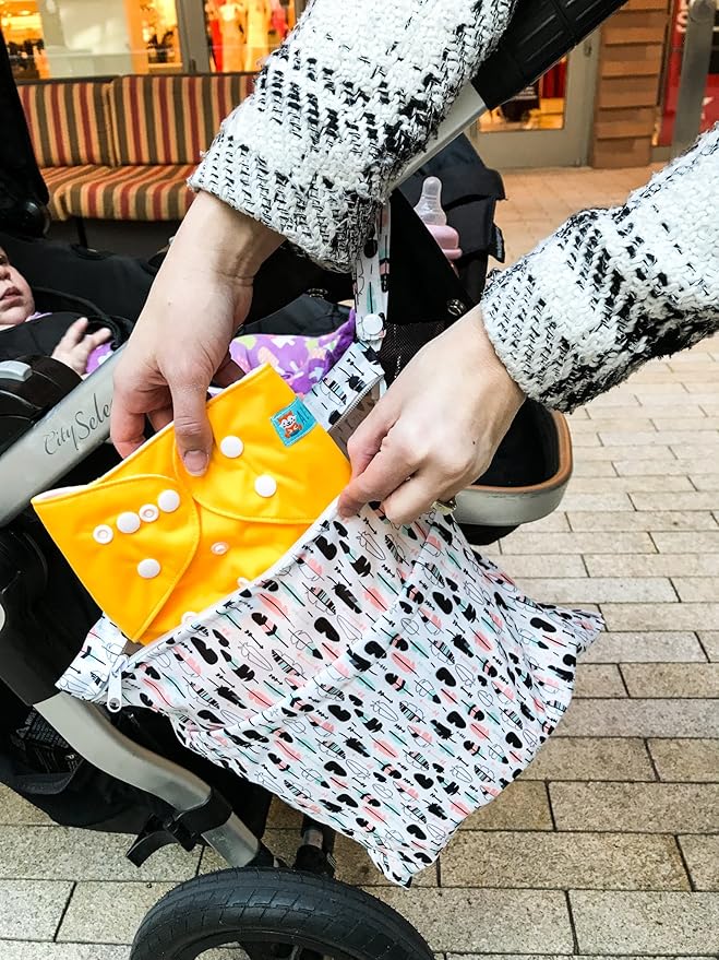 - Fashion, Reusable&Waterproof , High quality -A trim and attractive design. ALVABABY wet/dry bag are made from waterproof 100% polyester, put dirty cloth diapers in a wet bag. Comes with handle for easy carrying or attaching to your diaper bag or stroller.