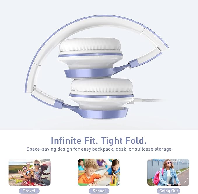 Lightweight and Foldable: At only 6 oz, these headphones are light and foldable, making them perfect for travel, school, and other on-the-go activities.
