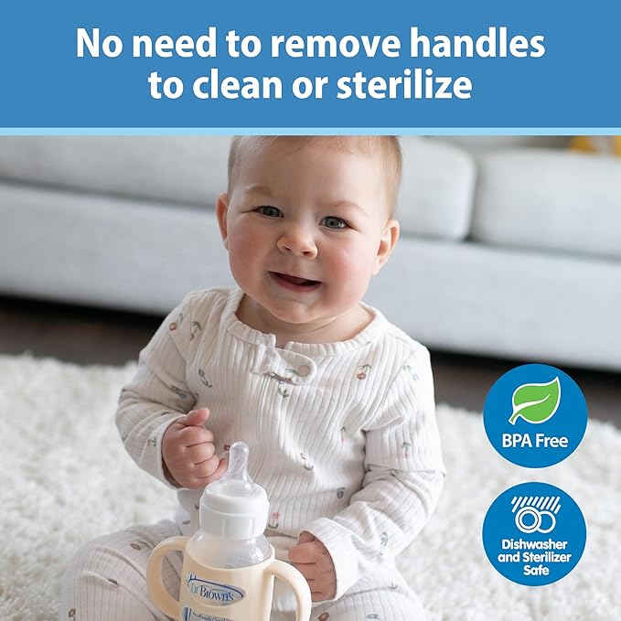 - Dr. Brown's Milestones 100% Silicone Baby Bottle Handles, Narrow, Removable Easy-Grip Transitional Sippy Cup Handles, Light Blue, 4m+, 1 Pack