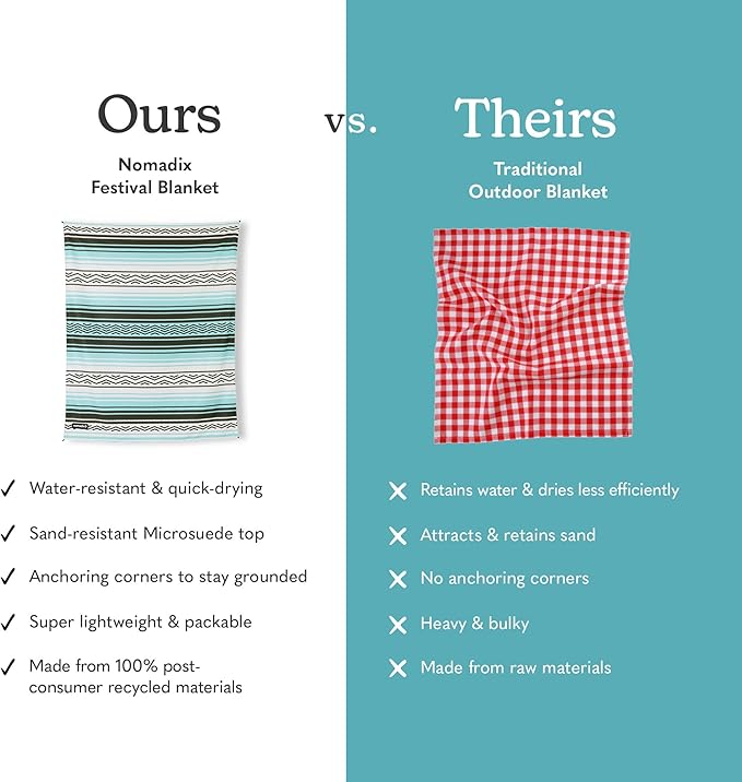 Nomadix Festival Blanket - Perfect for Picnics, Camping, & Lawn Seating - Plush Top & Water Resistant Base - Made with Post Consumer Recycled Materials - Agua Blue - 60x70 in