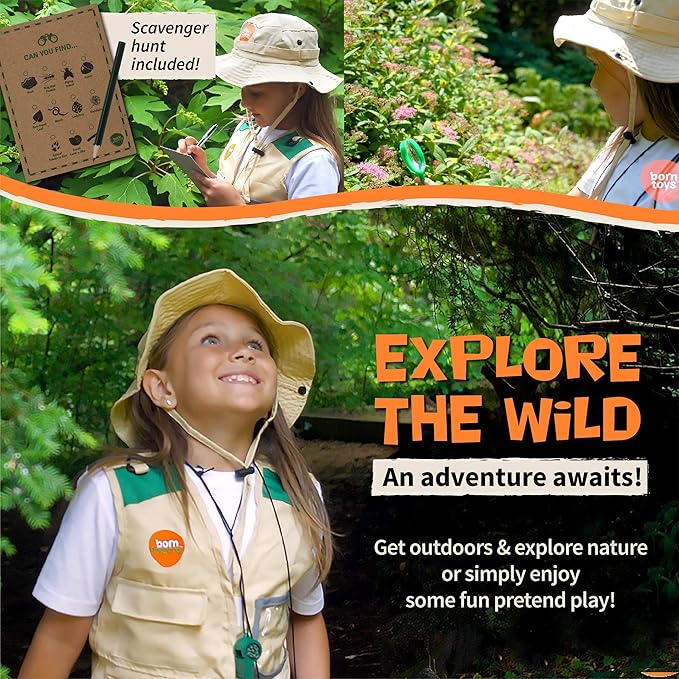 IDEAL GIFT: This outdoor kit for kids is useful for educational games and keeps children entertained & happy! Complete with its explorer costumes for girls and boys perfect for games like kids bug catching kit or as kids fishing vest