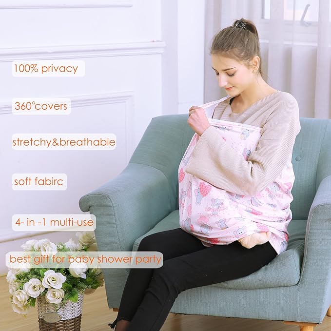 360° full coverage – If you need to breastfeeding your baby when you in public, how do ? Now just take 5 seconds to use our cover, everything is so simple! It made of infinity tubular shape, select high stretchy & breathable fabric, provides full privacy coverage and enough space while nursing.