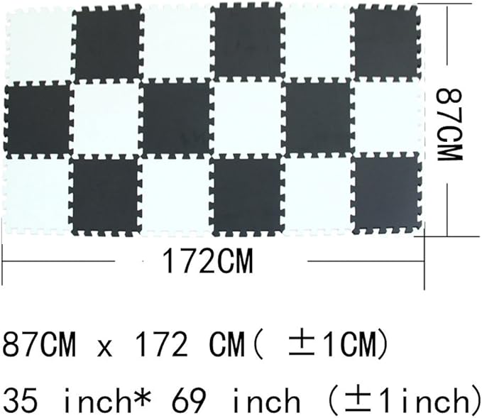 • ☺ Play Mat Size: the size of one piece:30 x 30 x 1CM (11.8 x 11.8 x 0.4 inches); 18 pieces mats cover area: 172cm x 87cm (±1CM) / 69" x 35"(±1inch)