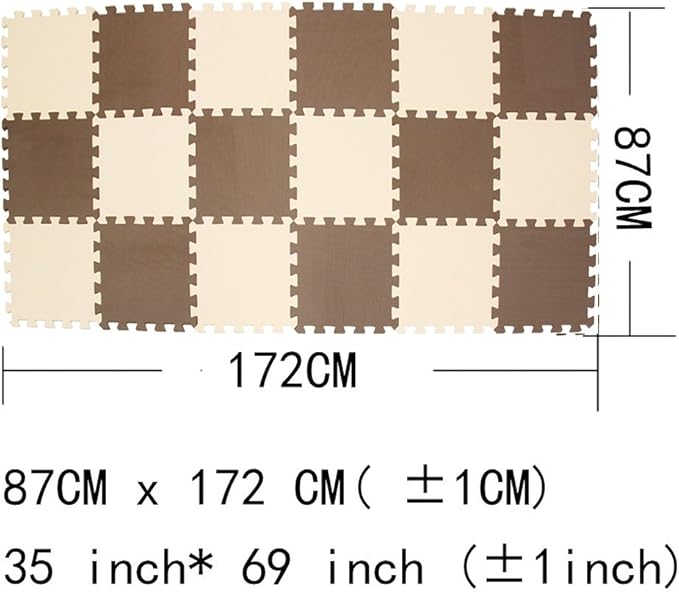 • ☺ Play Mat Size: the size of one piece:30 x 30 x 1CM (11.8 x 11.8 x 0.4 inches); 18 pieces mats cover area: 172cm x 87cm (±1CM) / 69" x 35"(±1inch)