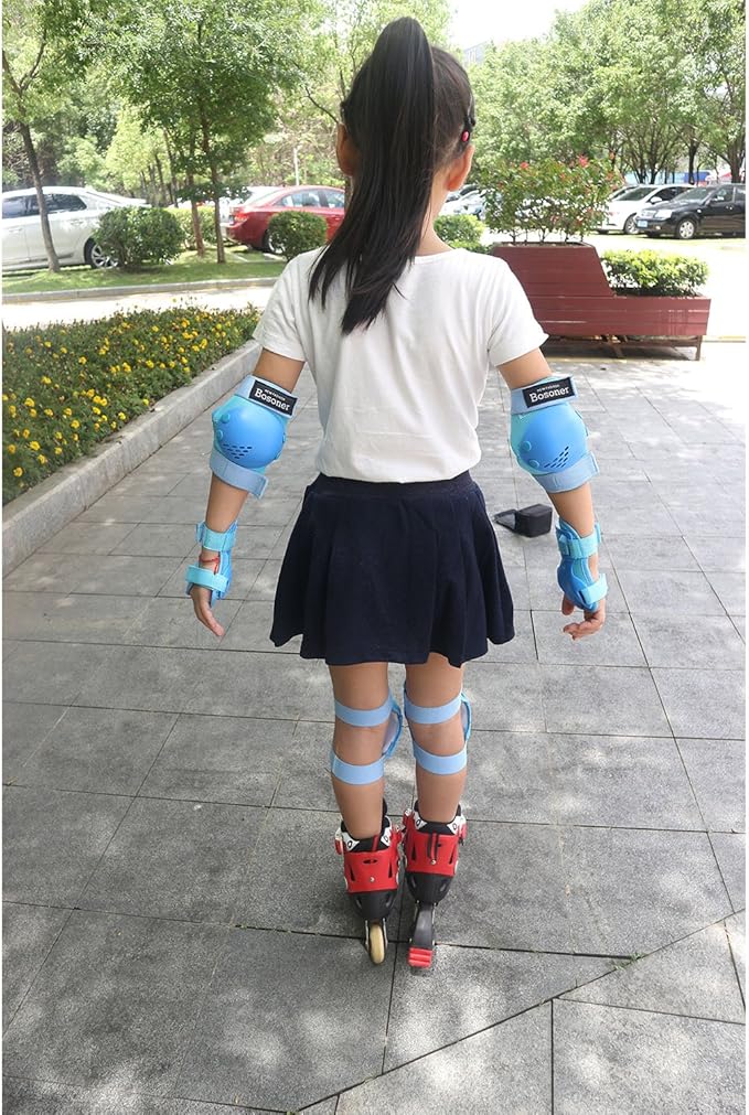- [Multiple Outdoor Sports] - BOSONER girls knee pads and elbow pads set are designed for sports safety protection, for skateboard, ice roller cycling skating, bicycle scooter, cycling biking, hover board, rolling, and other extreme sports which need impact protection gear