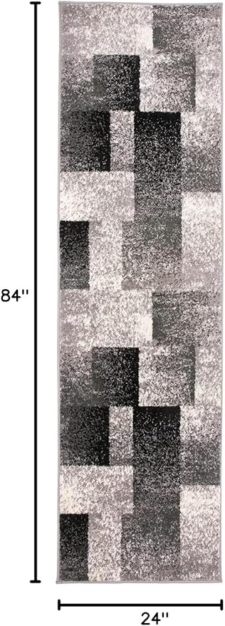 Rugshop Modern Distressed Boxes Runner Rug 2' x 7' Gray