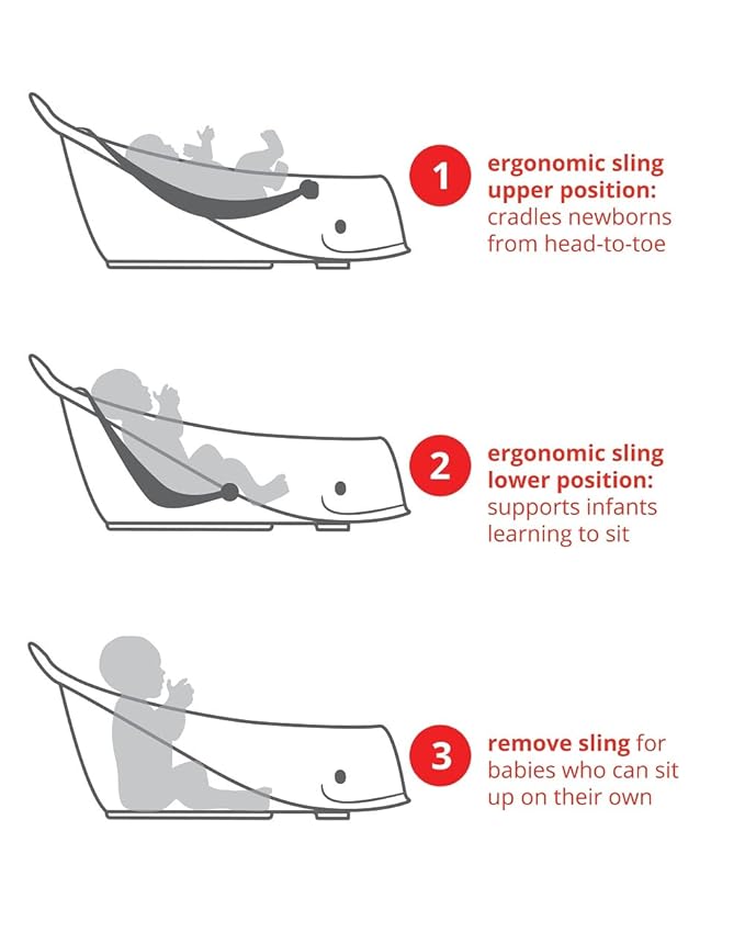 - Easy Transition for Sitters: Once your baby is ready to sit upright, the Smart Sling can be removed entirely, providing a spacious and comfortable tub. With no uncomfortable plastic bumps, it offers a smooth and roomy bathing experience for older babies