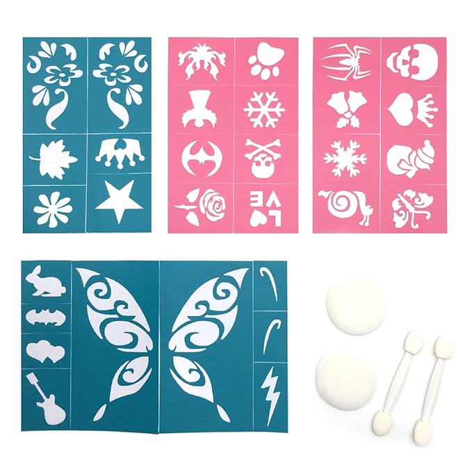 - 【10 Colors+2 Glitters】- Our face painting kit includes 10 colors face painting palettes, 2 Glitters, 4 Sets of Face Paint Stencils, 1 Large Brush for Greater Coverage and Vibrant Finish, 1 Thin Brush for Ultra-Fine Lines and sharp edges. 2 sponges, 2 double-ended foam applicators. glitter powders can be used to embellish eye shadow and blush, so that you can show a bright light in any occasion.