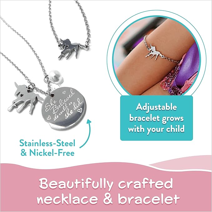 The Memory Building Company Unicorn Musical Jewelry Box, Classic Melody Storage Organizer Kids Ages 6-12, Wood Construction w/ 2 Compartments