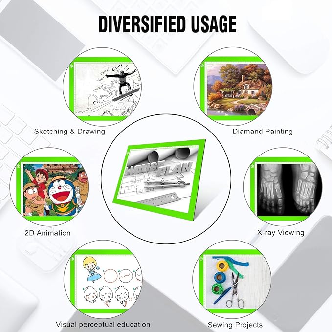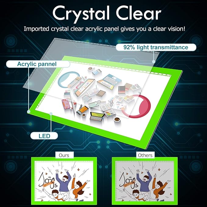 EYESIGHT-PROTECTIVE DESIGN -- Light tracing box with energy efficient flicker-free LED lamps, provides a perfectly even illustrated surface.