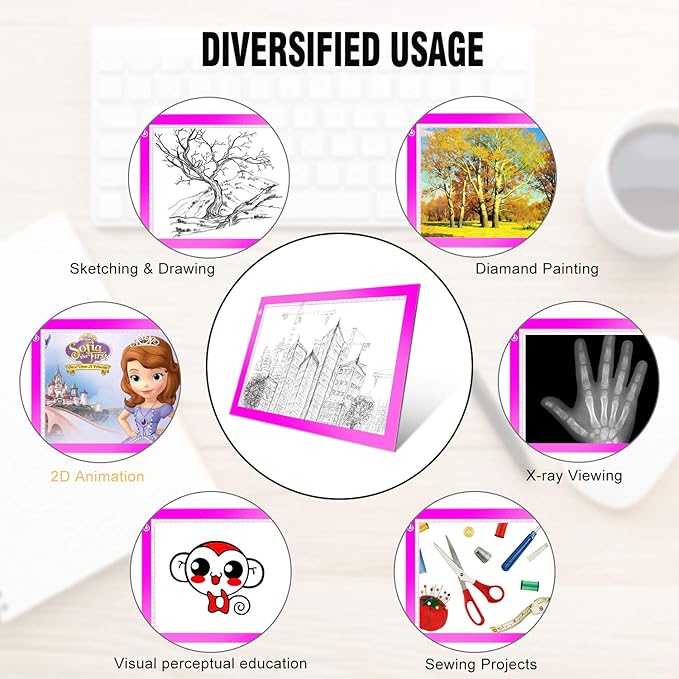 USB POWERED -- The light pad comes with 1pc USB power cable, you can easily connect to any computer, power bank or USB adaptor.