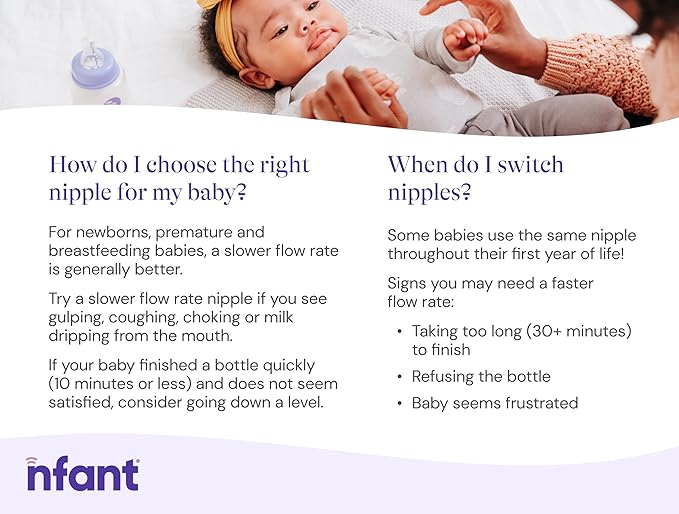 - FIND YOUR FLOW - Flow is unique to every baby. Each Nfant nipple is self-venting to allow the nipple to stay full of milk or formula while baby is feeding.