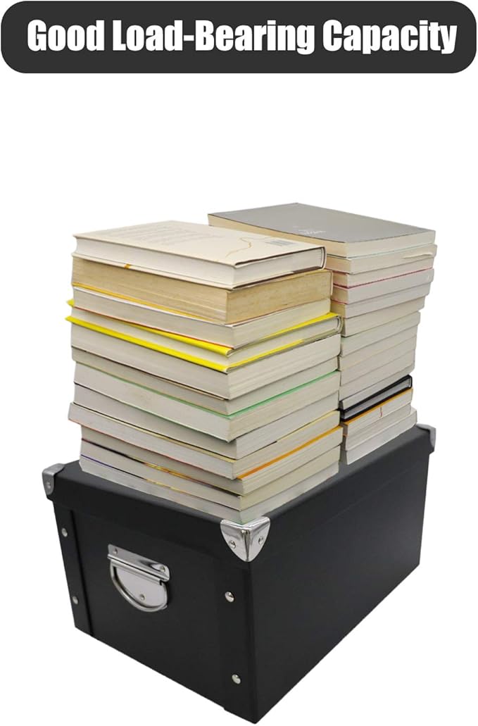GUOZI Collapsible Storage Box, Decorative Memory Box with Lid & Metal Reinforced Corners, Cardboard File Bin with Handles, Organizer Gift Box for Keepsake Toy Photos Office Nursery Wardrobe Bookshelf