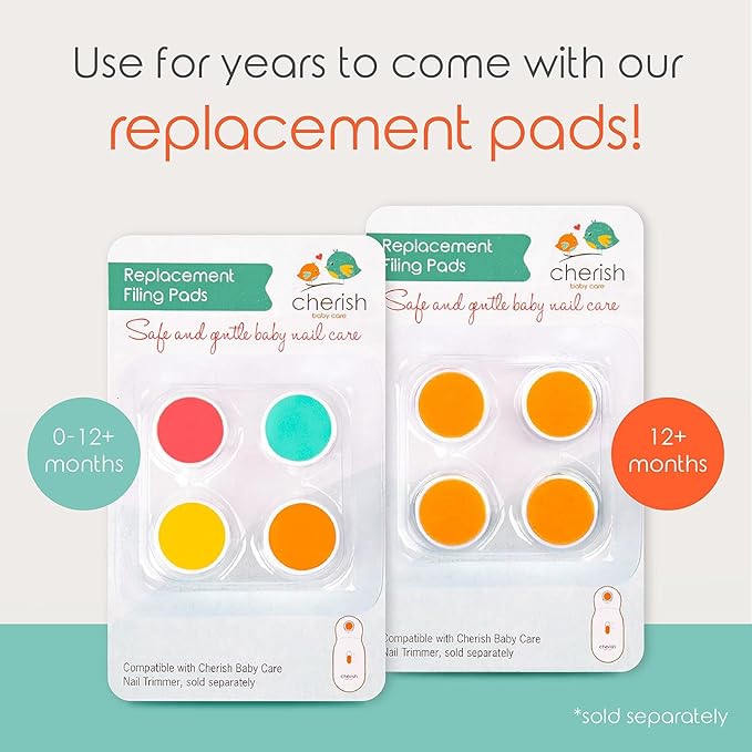 Cherish Baby Care Baby Nail Trimmer Electric - Automatic Safety Stop, BPA-Free & Safety-Tested Electric Nail File Baby, Includes 4 File Pads, 0-12+ Months