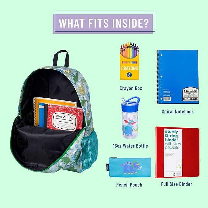 - The Ideal Size – The 16 Inch backpack for kids just-right size means you can bring the school supplies and snacks. This school backpack measures 16 x 12.5 x 9.5 inches and is suitable for school, practice, and travel.