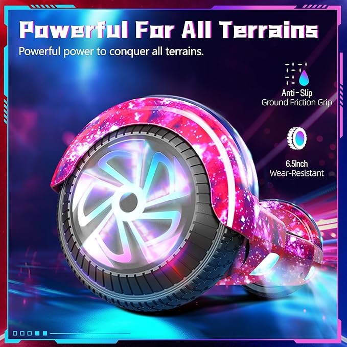 SISIGAD Scooters for Kids Ages 6-12, with Built-in Bluetooth Speaker and 6.5" Colorful Lights Wheels, Safety Certified Self Balancing Scooter Gift for Kids