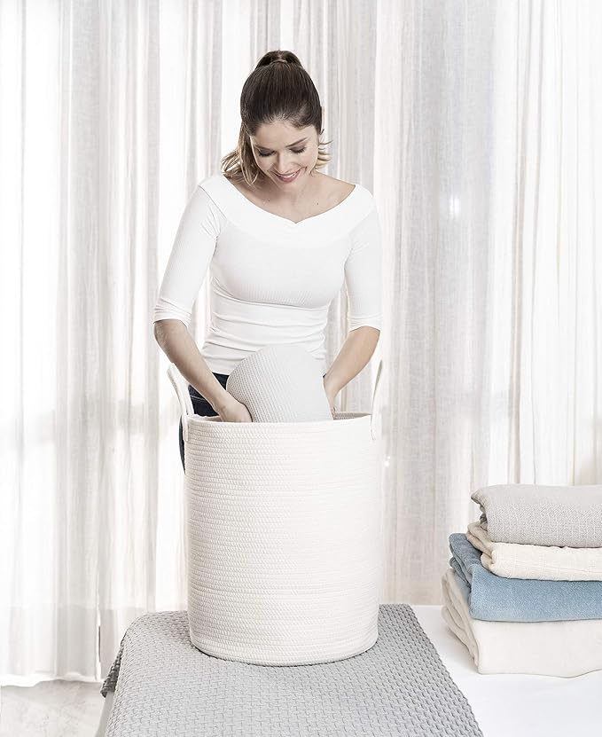 OrganiHaus White Laundry Basket 15x18, Cotton Rope Basket for Blankets, Tall Woven Baskets for Storage, Large Basket for Toys, Soft Blanket Holder Bin, Boho Blanket Basket for Living Room