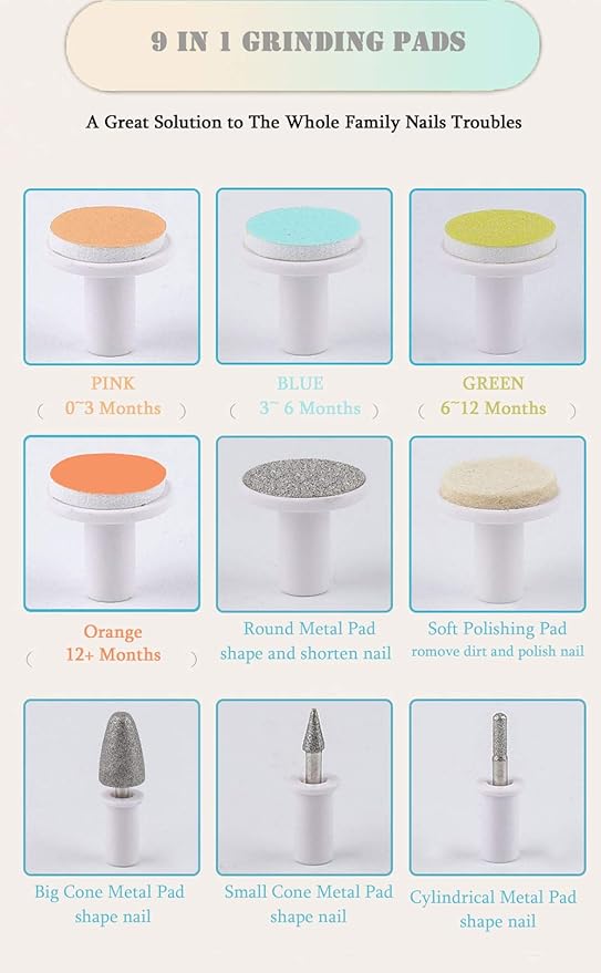 - A BUNCH OF ACCESSORIES - Fansidi rechargeable electric manicure set come with 5* Filing Tools for Adults; 4 * Cushioned Grinding Heads for Babies; 1*Main Unit; 1*Storage and Travel Case; 1* user manual, Additionally we provide 4 replacement pads for meeting your more demands.