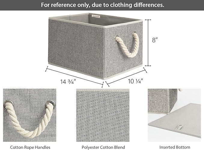 Closet baskets feature two soft rope handles for comfortable grasping and easy carrying.