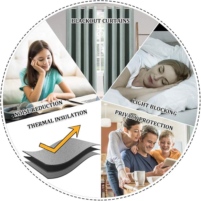 - TRIPE WEAVE TECHNOLOGY:We adopt tripe weave technology to make material. With the help of this technology, curtains could insulate the room from the heat and cold all the year, so that it will save energy. Also,curtains could reduce the noise to keep your room quiet. Blackout curtains could provide you a comfortable environment with privacy.