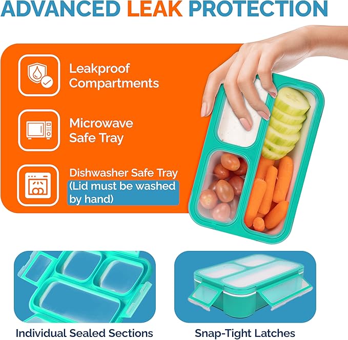 MINI Lunch-Box Snack Containers for Kids | SMALL Bento-Box Portion Container | Leak-proof Boxes for School Work Travel | Best for Adults Boys or Girls | Blue + Orange Set of 2