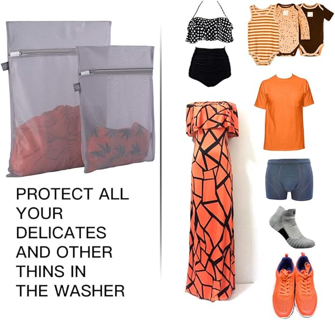 - 【Come in 2 Pieces】 1M (12x16 inch) & 1L (16x20 inch), perfect for washing underwear, socks, hosiery, tights, baby clothes, silk blouese, lace garments, t-shirts, derss shirts, swimsuits, gloves and scarves
