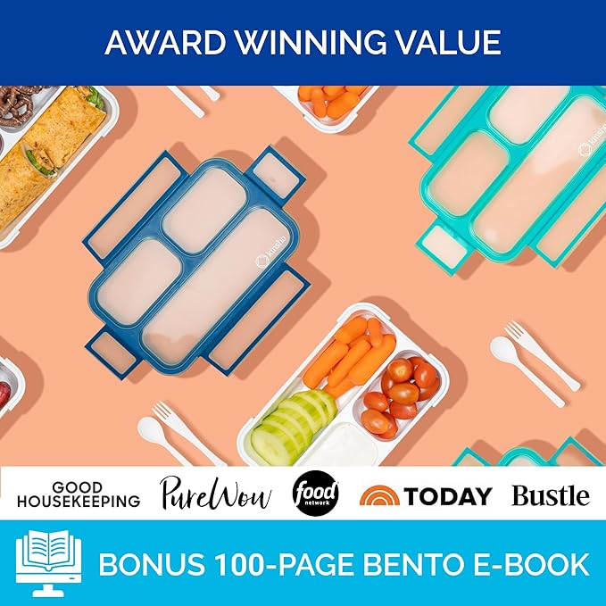 - AWARD WINNING bento boxes name "BEST VALUE" by SheKnows Media! FEEL CONFIDENT you are providing a healthy variety of well-portioned items. LEAKPROOF compartments keep food looking good and tasting fresh. SMILE when you hear comments that snacks or lunches look especially craveworthy in this modern design.