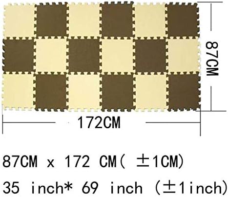 Cover area: 86CM x 170CM( Β±1CM) / approx. 1.46 SQ. M,one sets 18pcs,(300mm x 300mm x 10mm). Package includes 6 WHITE,6BEIGE and 6BROWN interlocking foam tiles, making it a perfect workout and training accessory.