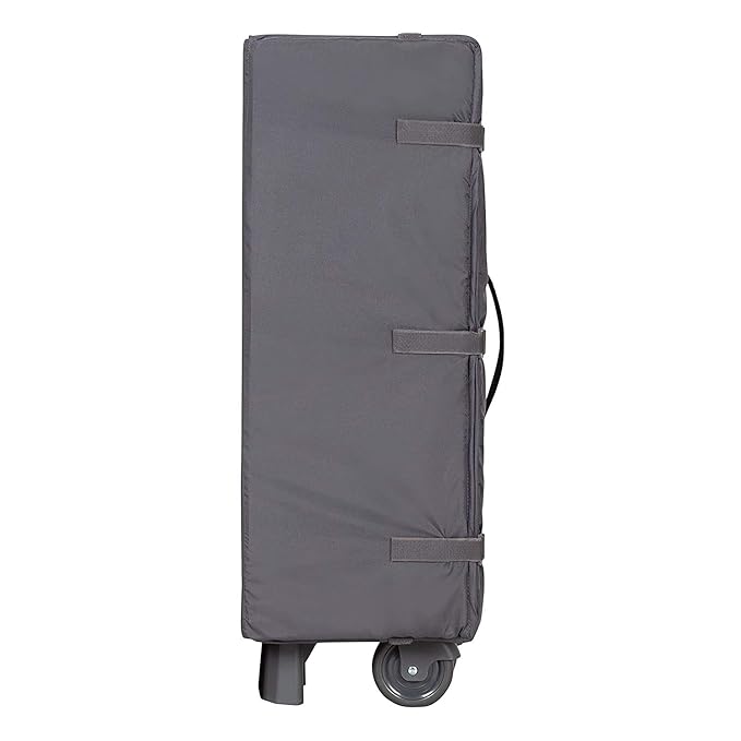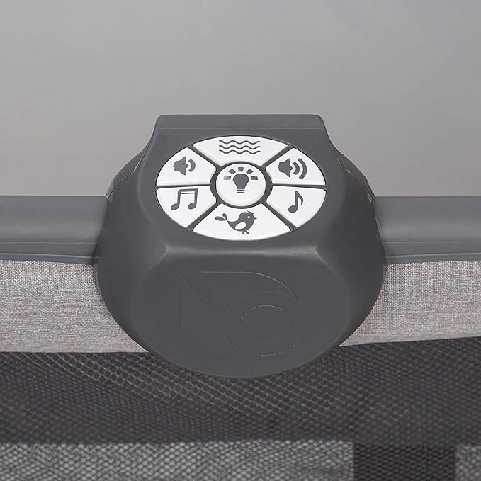 Includes: Removable full bassinet, Changing table, Deluxe Parent Organizer, Large wheels with brakes, Travel/storage tote bag, Electronic music center with volume control, nightlight, and vibration