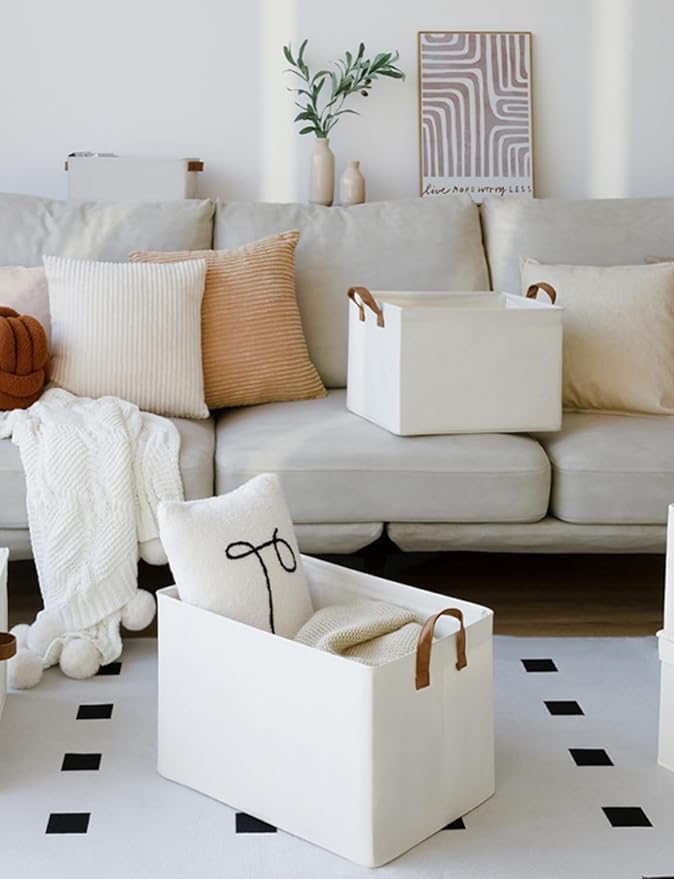 Handle with Ease: With the 2 PU handles securely riveted to the sides of the storage bin, you can easily carry items without tearing the handles.