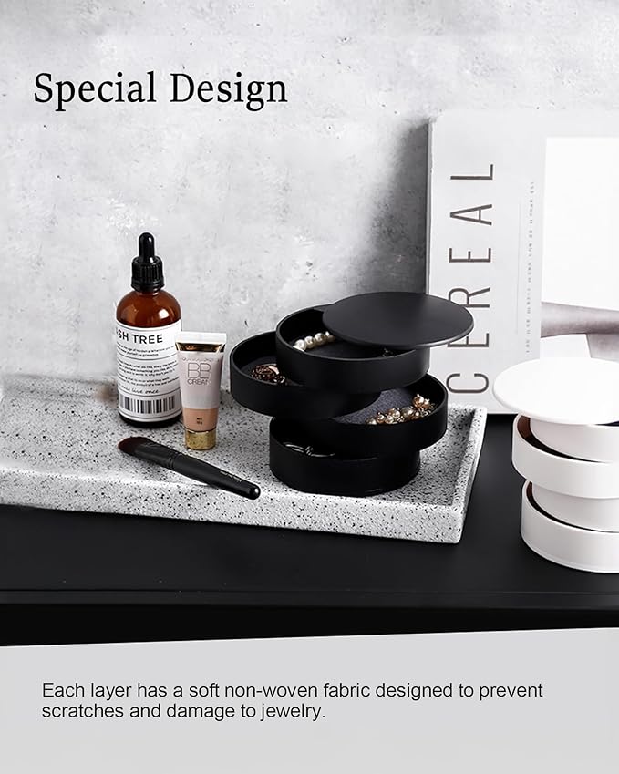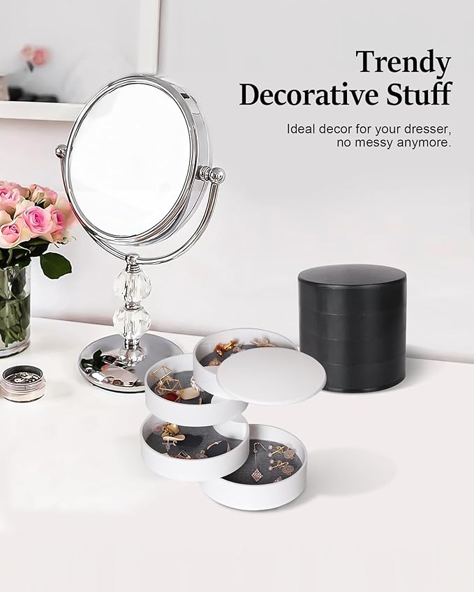 - ♥【Rotating Jewelry Organizer】- Simple and modern style, rotate into any look you like, excellent dressing table decor; it's a compact cylinder when closed, and isolate dust to better maintain the luster of jewelry.