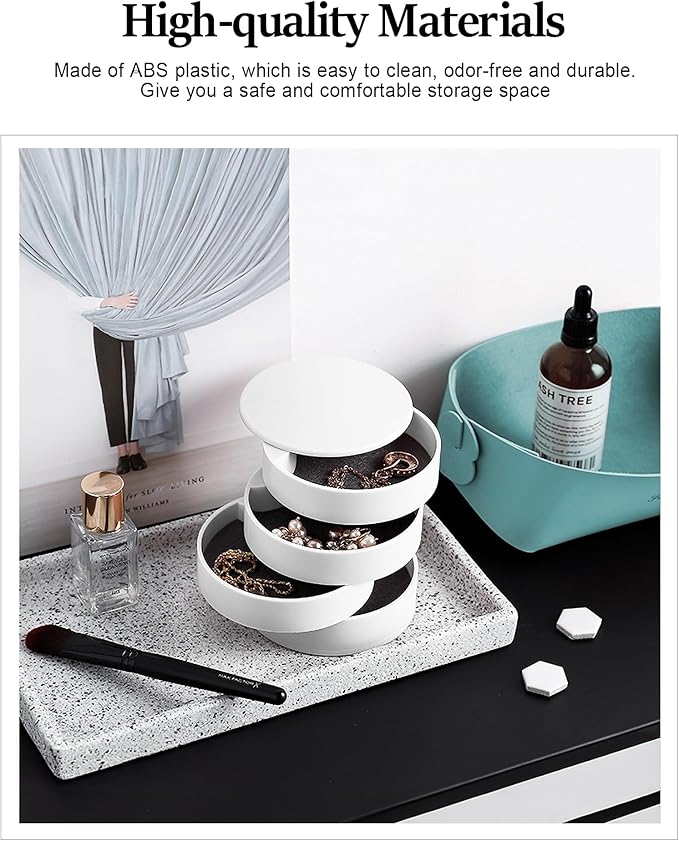 - ♥【High Quality Materials】- Made of premium ABS plastic, non-toxic, odor-free and durable. Internal soft non-woven fabric for preventing scratch and tarnish, give you a safe storage space to protect the jewelry.