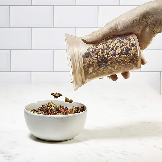 - Designed for easy use and cleaning: Single-piece construction with no glue or plastic sliders, Zip Top is the most durable and easy-to-use reusable container. The tops stay open and zippers do not overlap in the corners like normal zippers making it super easy to clean. Thick strong silicone will not tear or break keeping food fresh. No more lids!