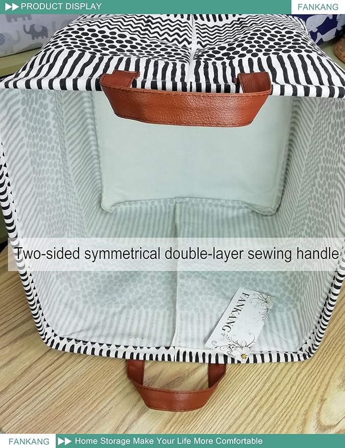 FANKANG Square Nursery Hamper Storage Bins Canvas Laundry Basket Foldable with Waterproof PE Coating Storage Baskets Gift Baskets for Children, Office, Bedroom, Clothes(Square-Black Lines )